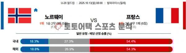 2025년 10월 13일 노르웨이 vs 프랑스 FIFA U-20 월드컵 8강전 경기 분석